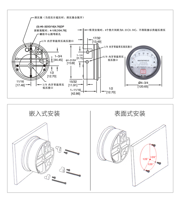 可以利用隨產(chǎn)品提供的標準配件對差壓表進行表面或嵌入式安裝(墻體內(nèi)安裝可配用天恩不銹鋼安裝盒)。